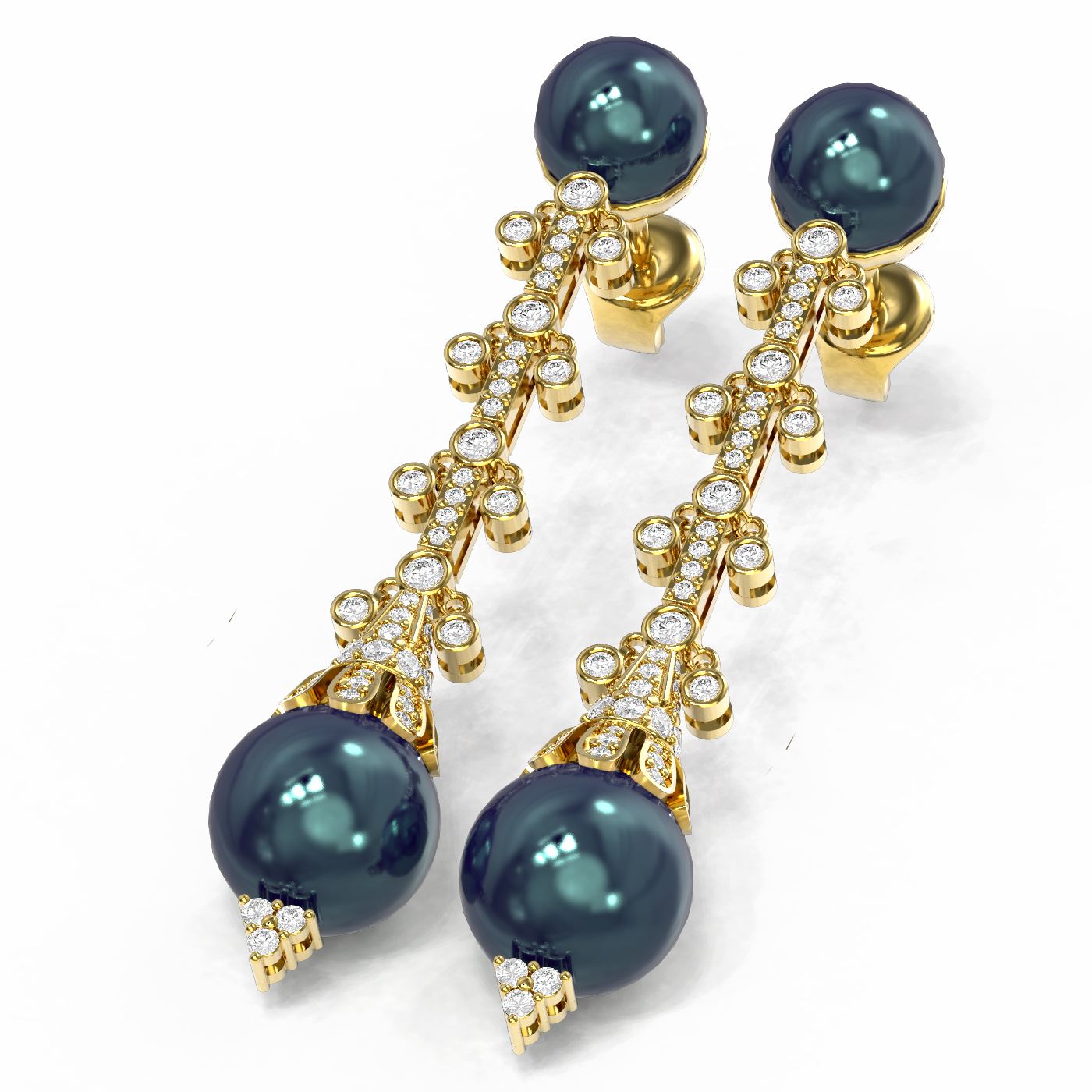 REF-261F8M - SKU: 55414 ---- 2 ctw Diamond & Pearl Earrings 18K Yellow Gold