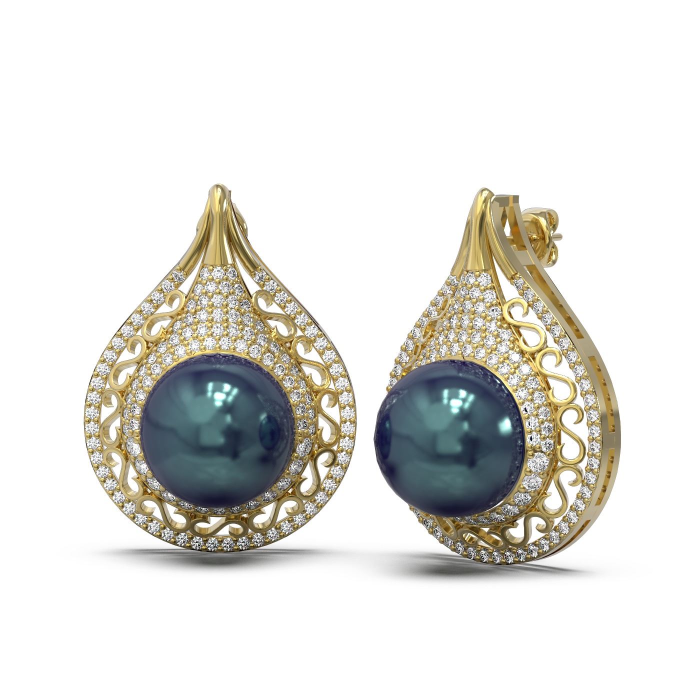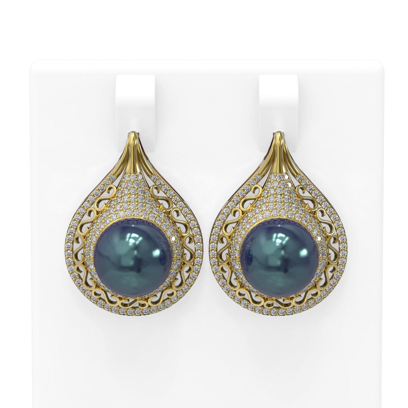 SKU: 55369 ---- 2 ctw Diamond & Pearl Earrings 18K Yellow Gold