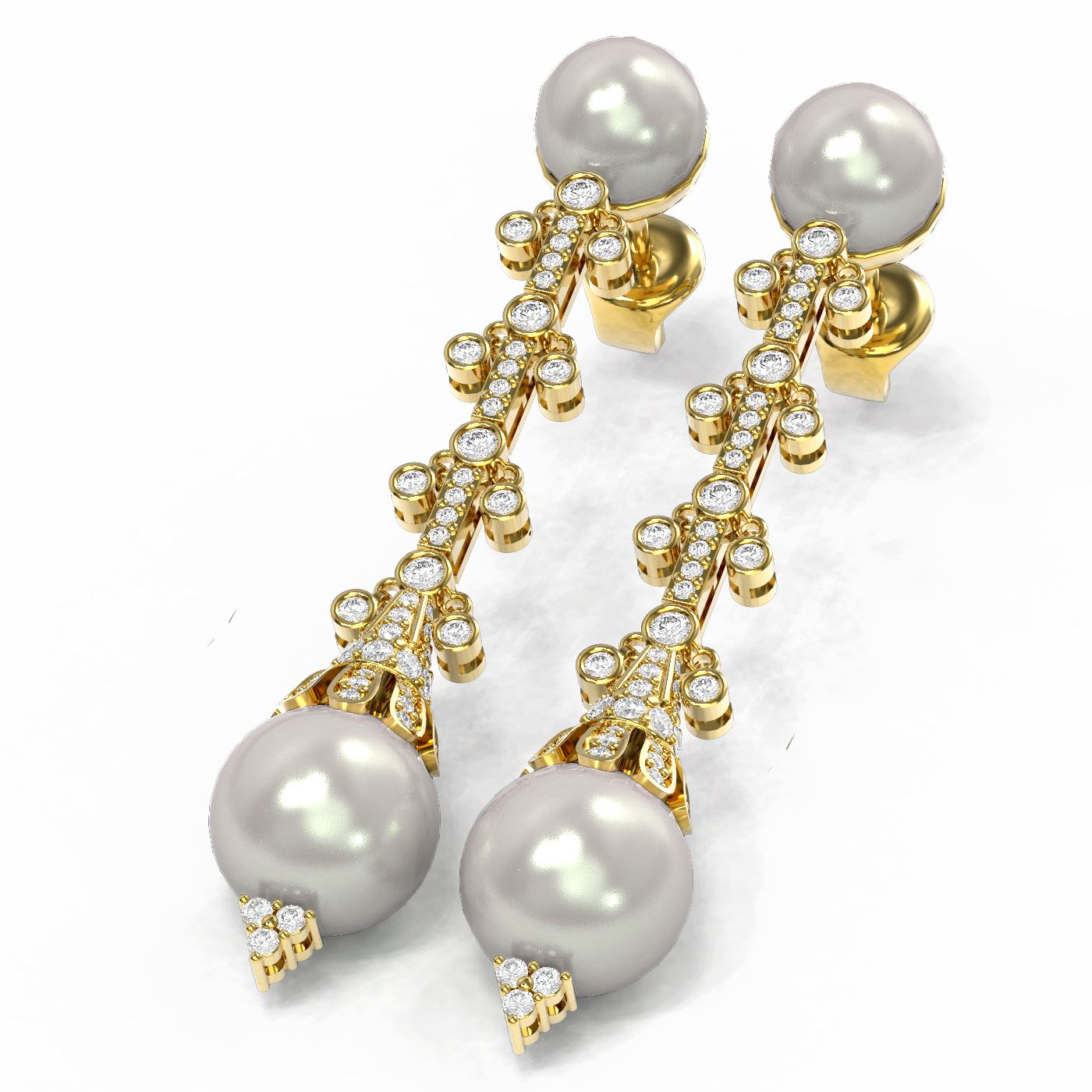 SKU: 55417 ---- 2 ctw Diamond & Pearl Earrings 18K Yellow Gold