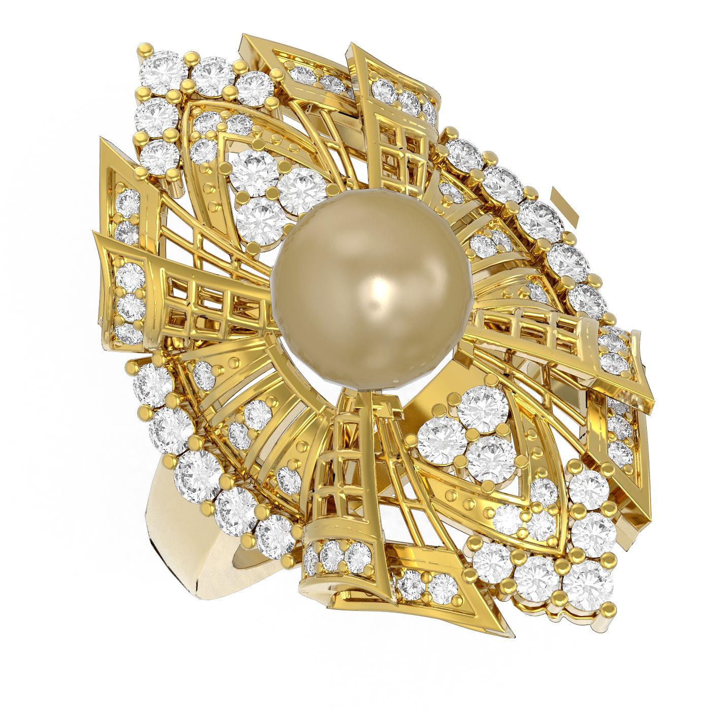 SKU: 54805 ---- 2 ctw Diamond & Pearl Ring 18K Yellow Gold