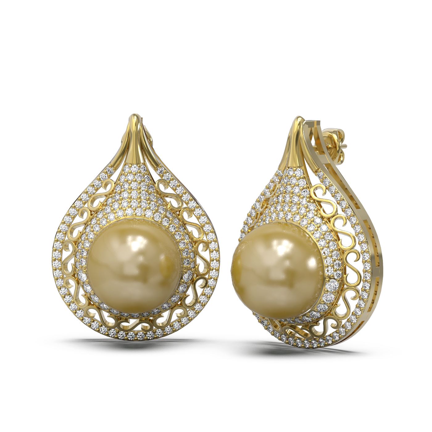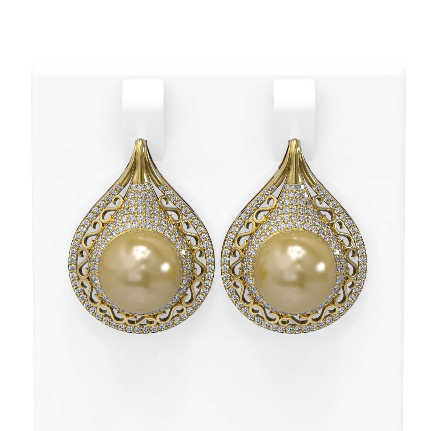 2 ctw Diamond and Pearl Earrings 18K Yellow Gold