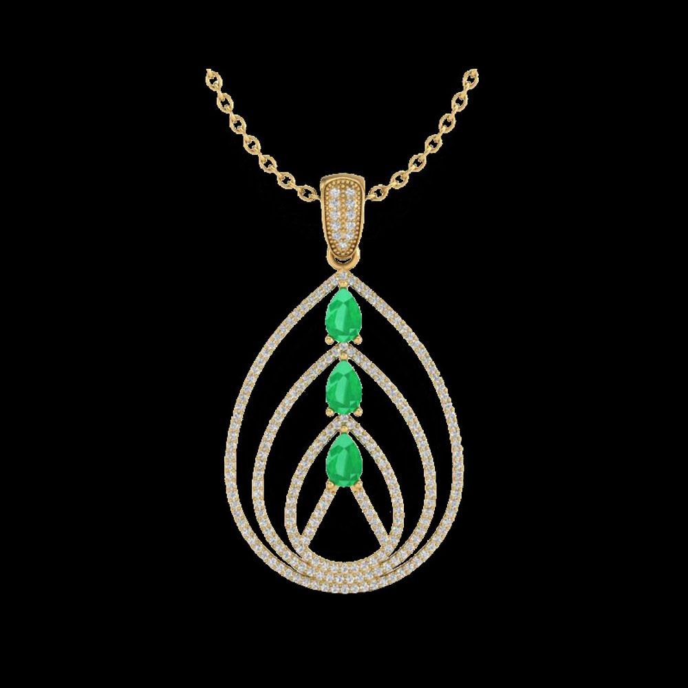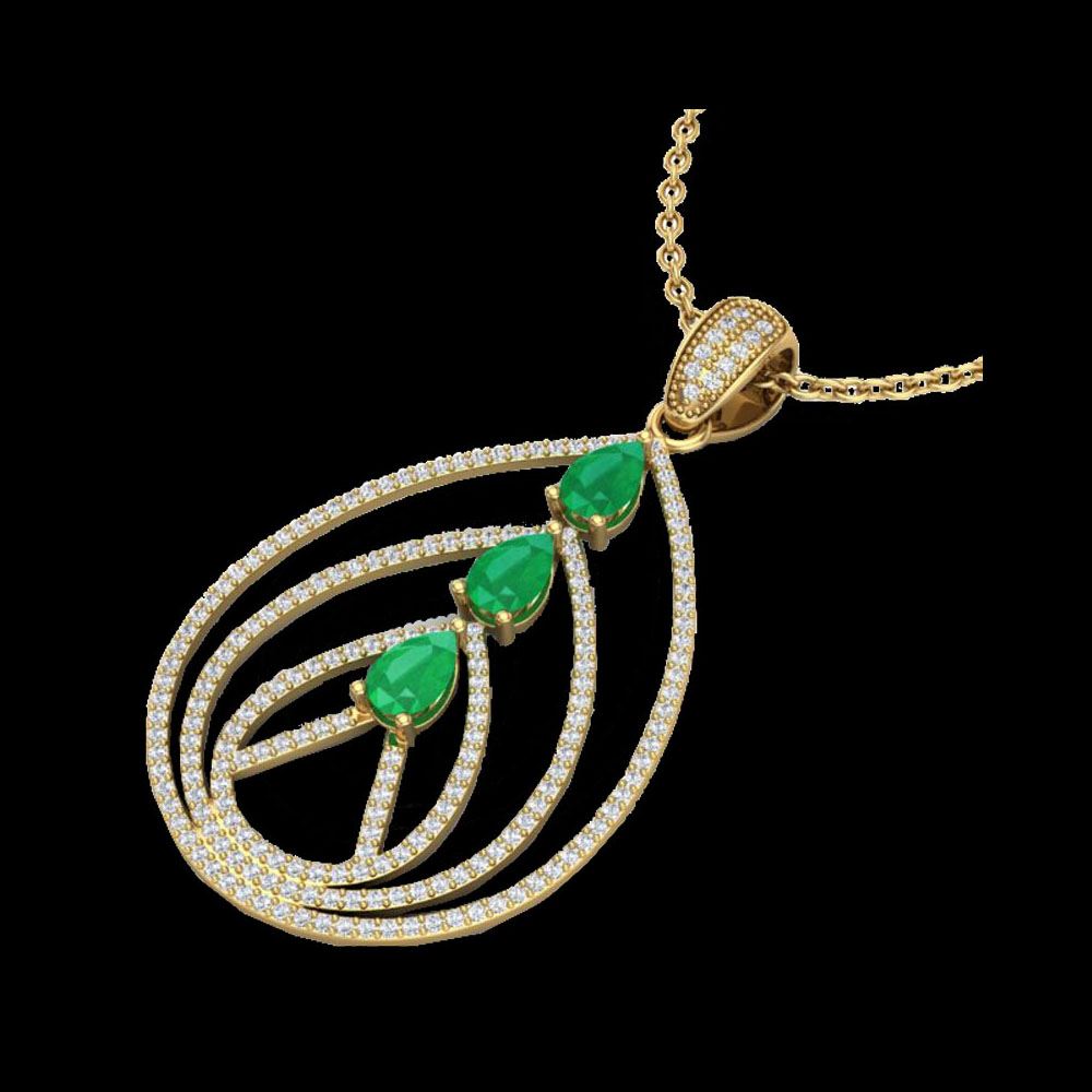 2 ctw Emerald & Micro Pave VS/SI Diamond Necklace 18K Yellow Gold