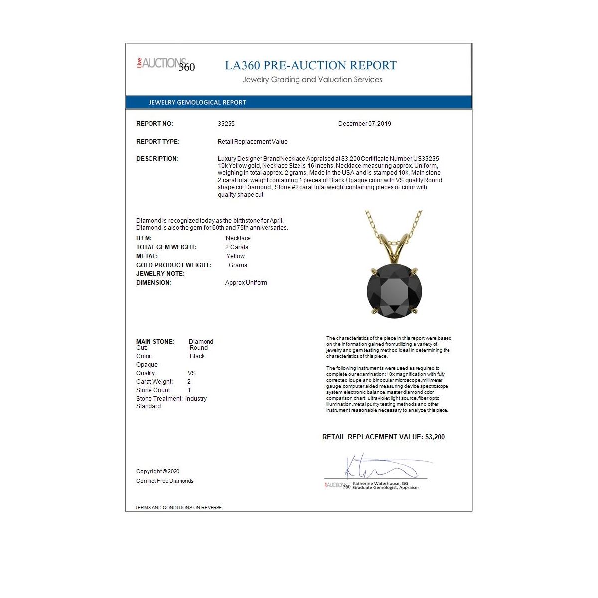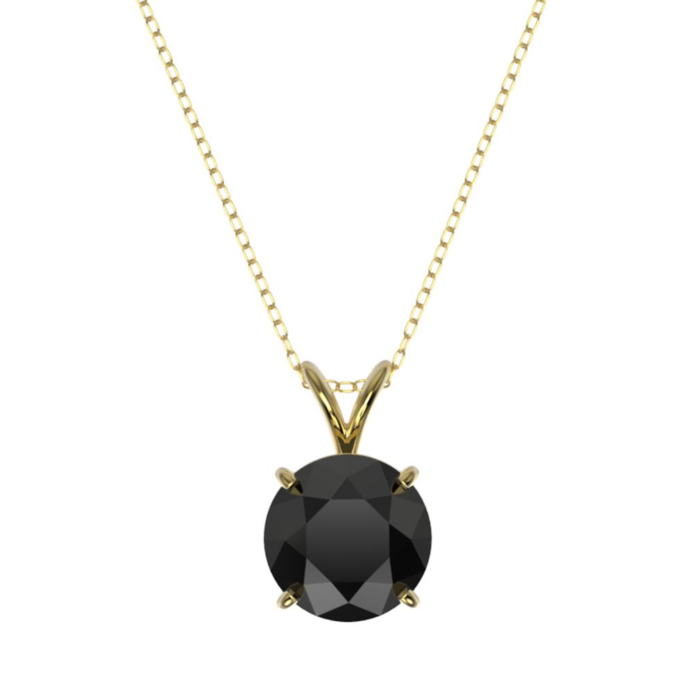 REF-35F6M - SKU: 33235 ---- 2 ctw Fancy Black Diamond Solitaire Necklace 10k Yellow Gold