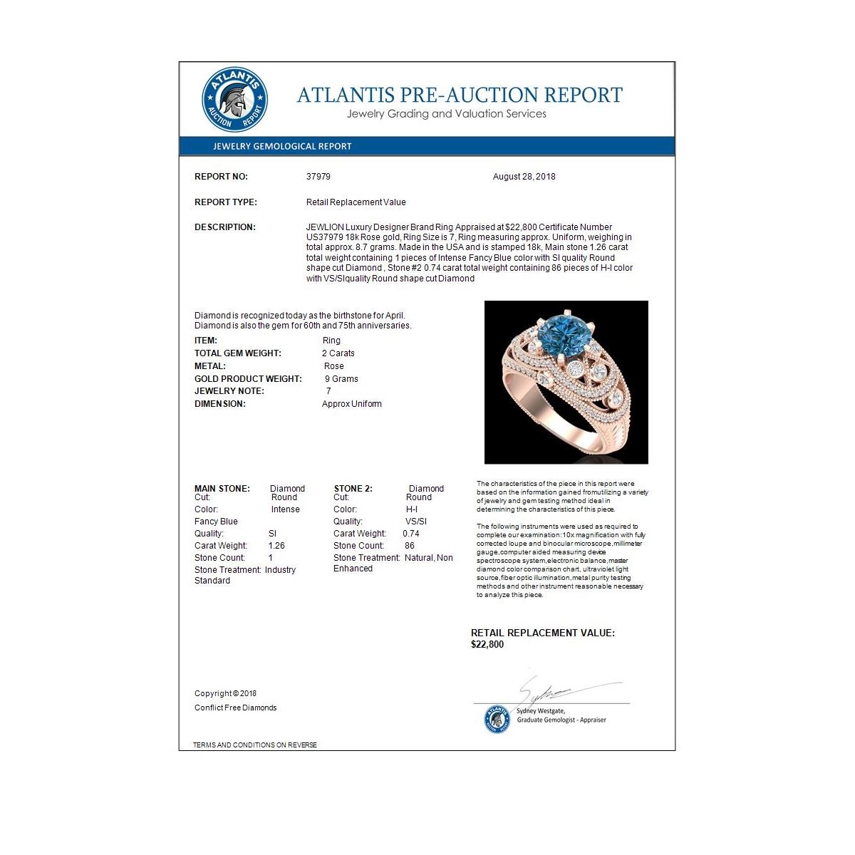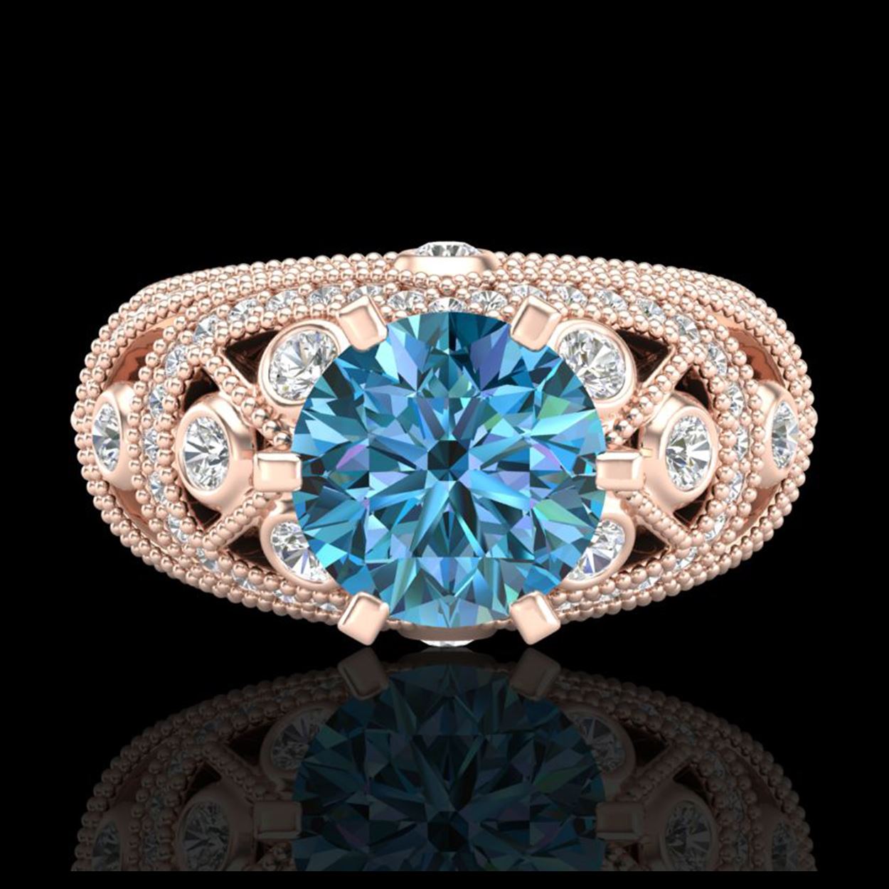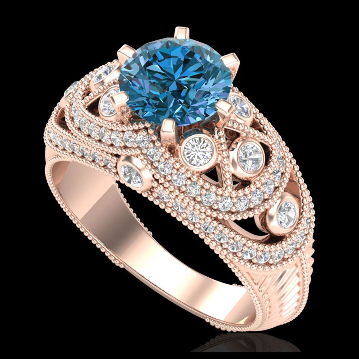 2 ctw Intense Blue Diamond Art Deco Ring 18K Rose Gold