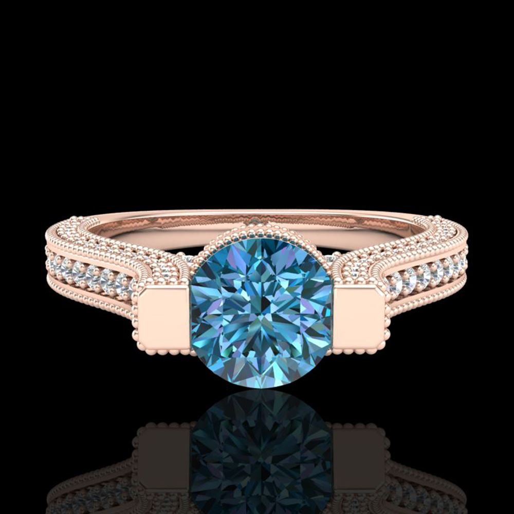 REF-200R2K - SKU: 37622 ---- 2 ctw Intense Blue Diamond Engagment Micro Pave Ring 18k Rose Gold