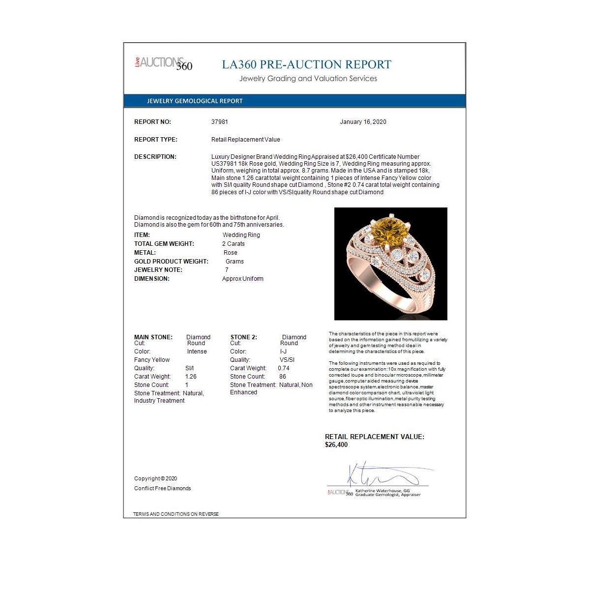 REF-436G4W - SKU: 37981 ---- 2 ctw Intense Yellow Diamond Engagment Art Deco Ring 18k Rose Gold