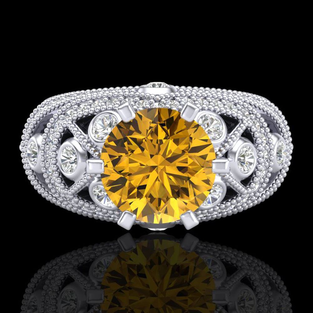 SKU: 37980 ---- 2 ctw Intense Yellow Diamond Engagment Art Deco Ring 18k White Gold