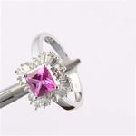 * Gem Type: Princess Cut Created Pink Sapphire Center Stone * Accent Stones: Baguette Cut White Created Sapphires * Metal Type: White Gold * Metal stamp: 10K * Ring Setting Is "Solid Gold" - "NOT" Plated Base Metals * Ring Size: 7