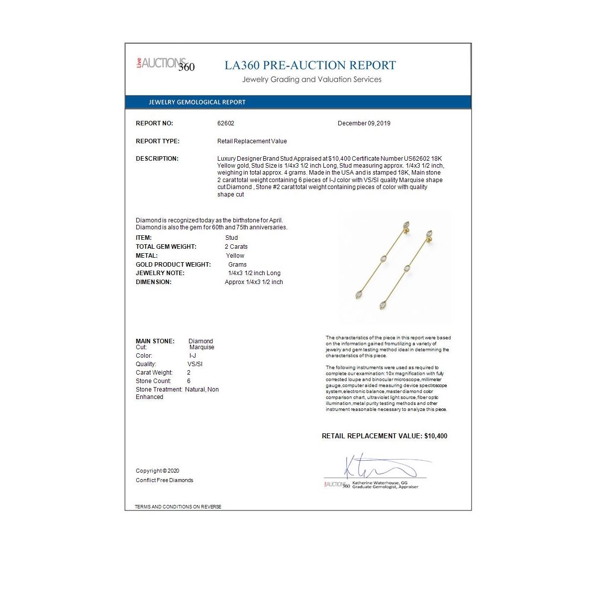 REF-314N9F - SKU: 62602 ---- 2 ctw Marquise Diamond Station Earrings 18K Yellow Gold