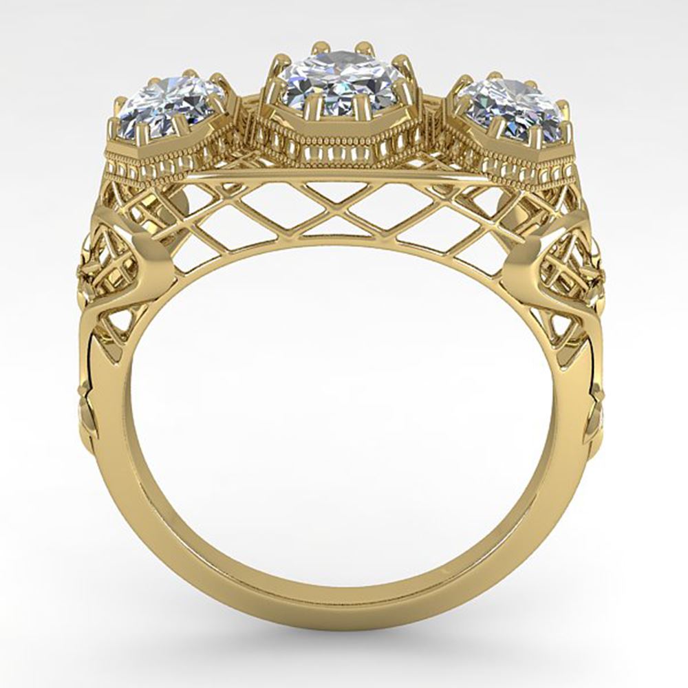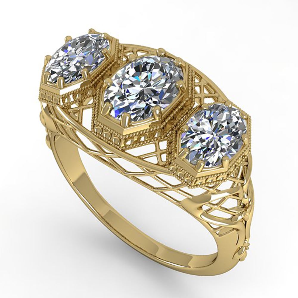 REF-421H8R - SKU: 36067 ---- 2 ctw Past Present Future Oval Cut Diamond Ring Art Deco 18k Yellow Gold