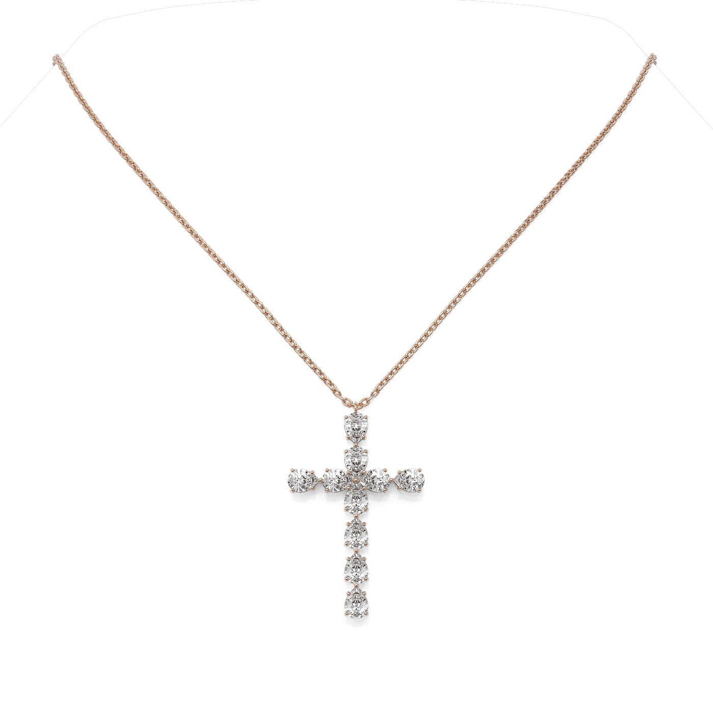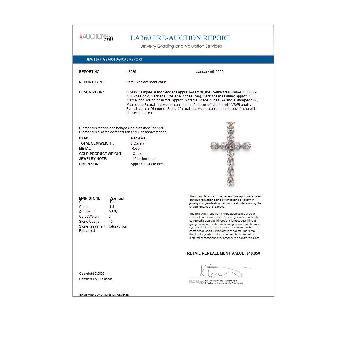 REF-228X2A - SKU: 48289 ---- 2 ctw Pear Diamond Designer Cross Necklace 18K Rose Gold