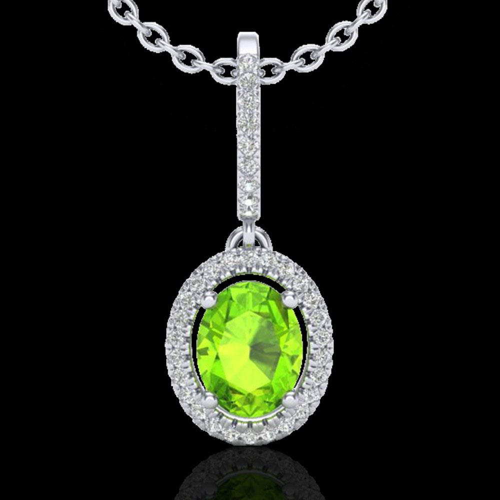 REF-52N8F - SKU: 20665 ---- 2 ctw Peridot & Micro Pave VS/SI Diamond Necklace Halo 18k White Gold