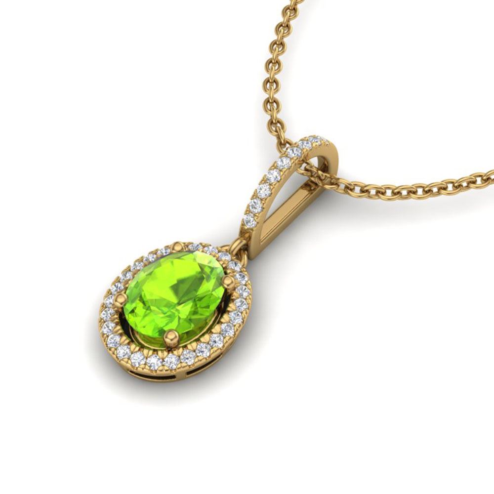 REF-52M8G - SKU: 20666 ---- 2 ctw Peridot & Micro Pave VS/SI Diamond Necklace Halo 18k Yellow Gold