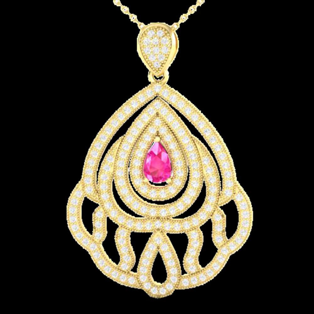 REF-180M2G - SKU: 21268 ---- 2 ctw Pink Sapphire & Micro Pave VS/SI Diamond Necklace 18k Yellow Gold