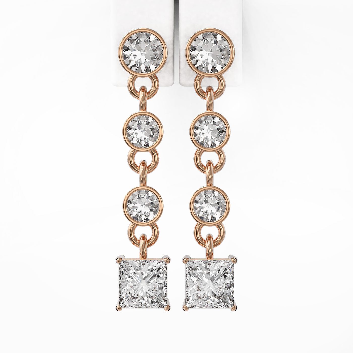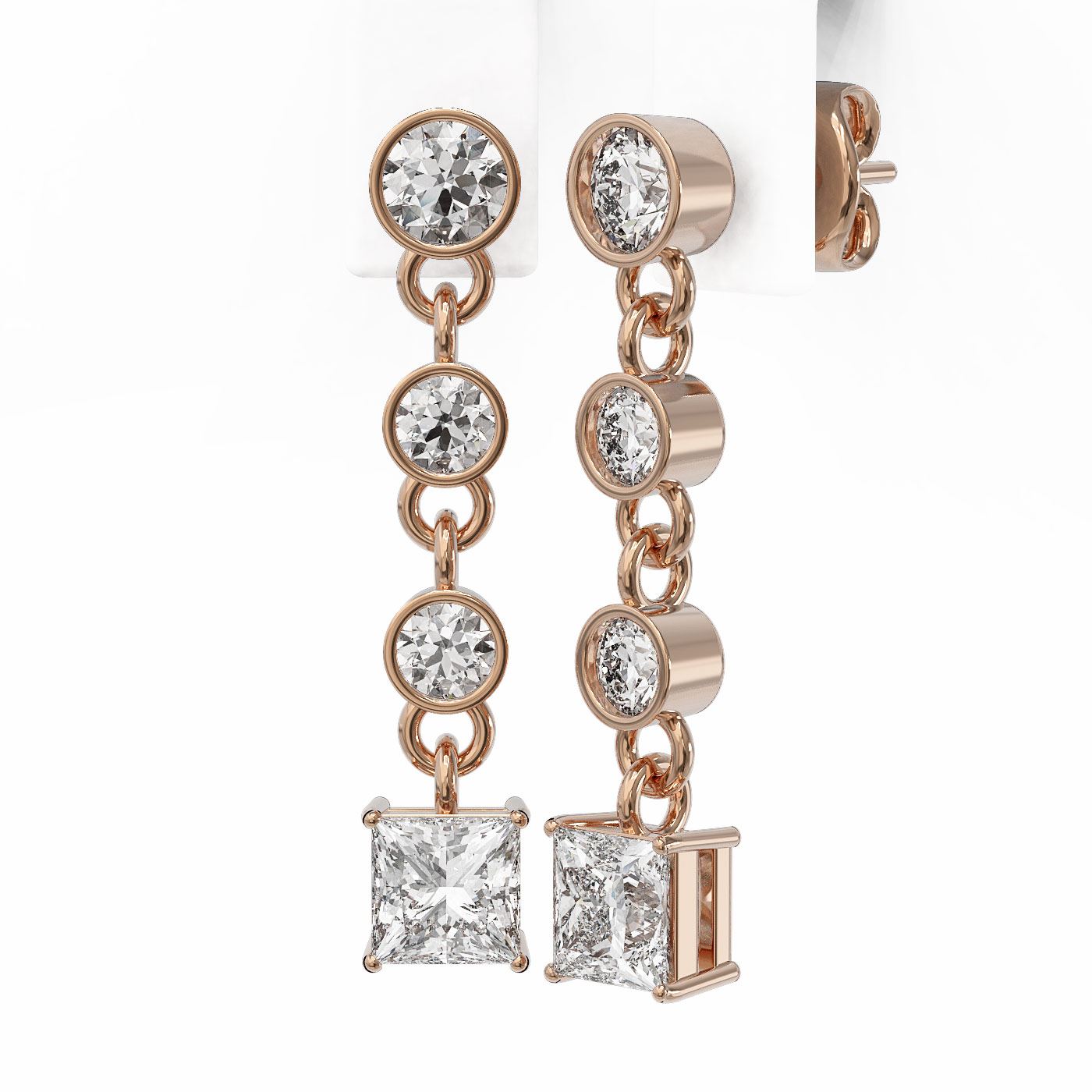 SKU: 49723 ---- 2 ctw Princess Cut Diamond Designer Earrings 18K Rose Gold
