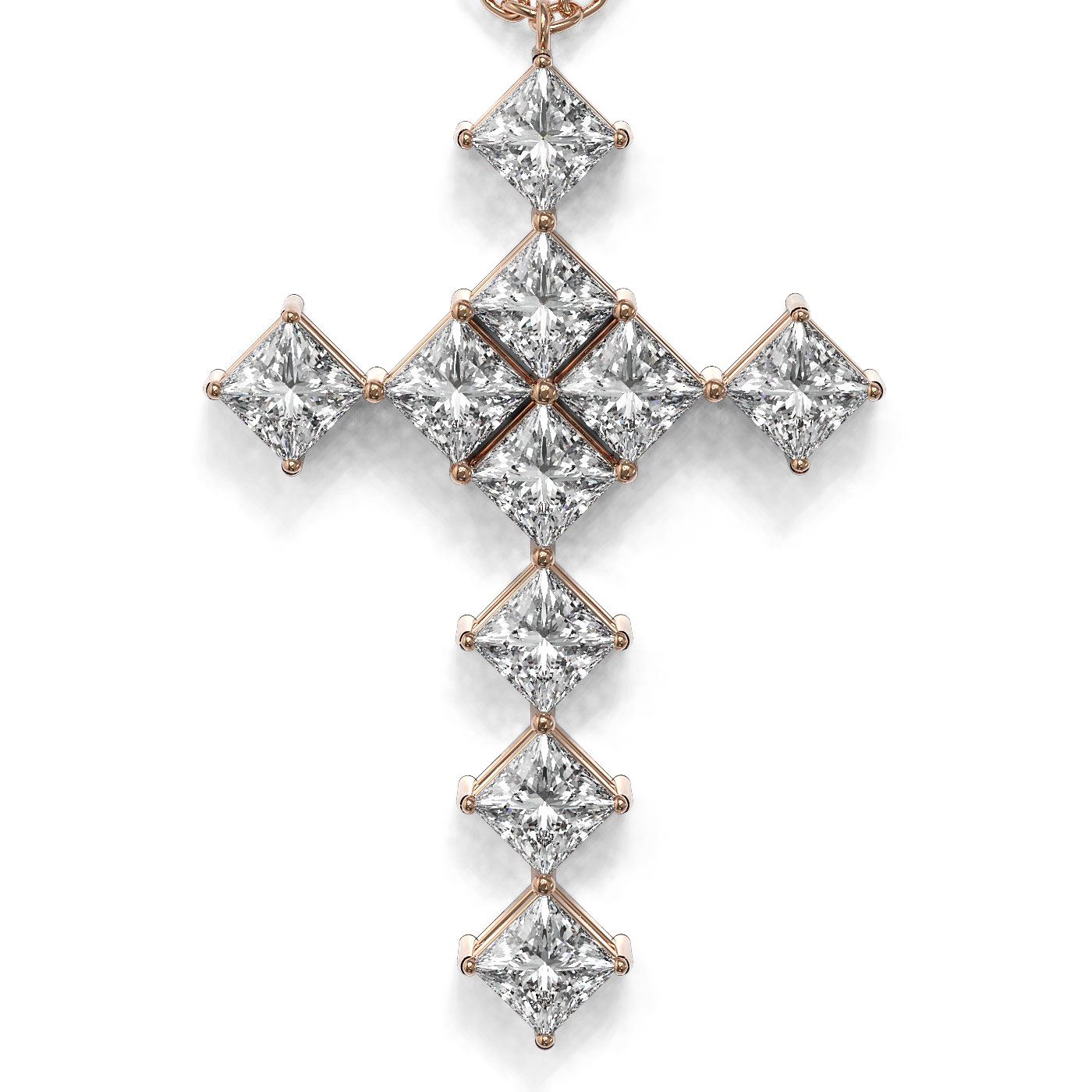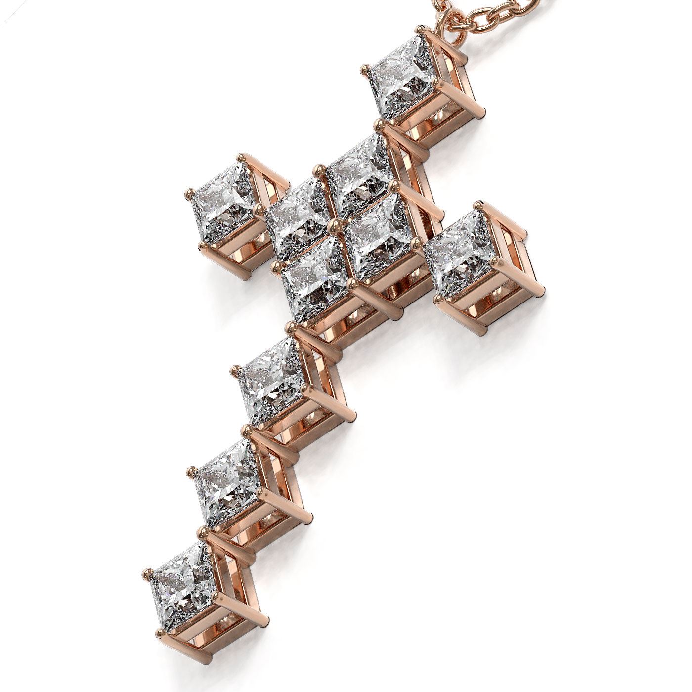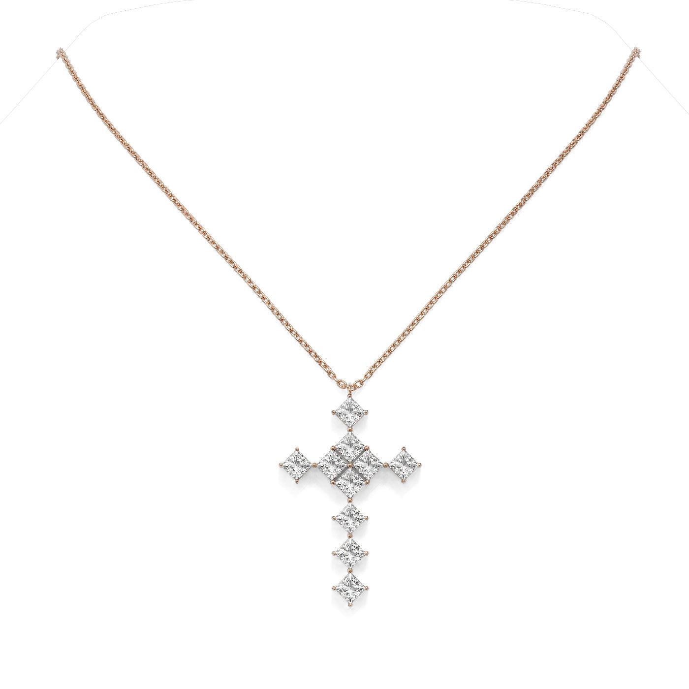 SKU: 48283 ---- 2 ctw Princess Diamond Designer Cross Necklace 18K Rose Gold
