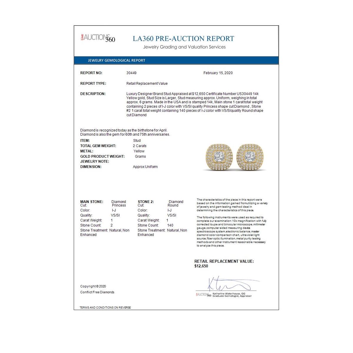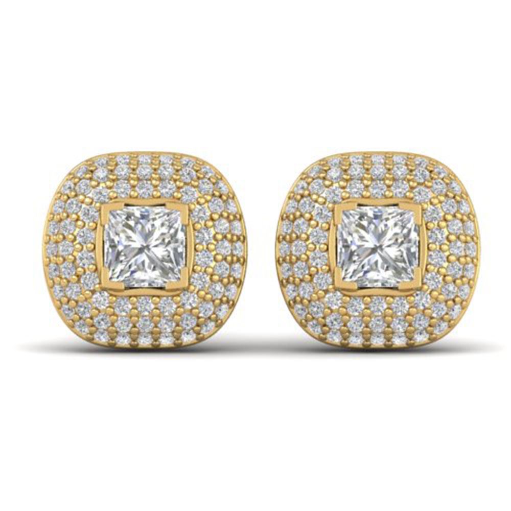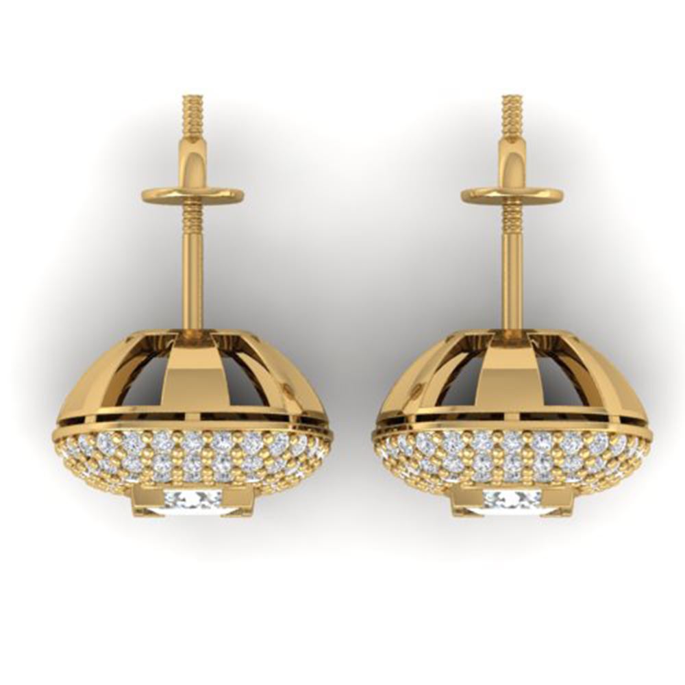 REF-255R3K - SKU: 30449 ---- 2 ctw Princess VS/SI Diamond Art Deco Micro Earrings 14k Yellow Gold