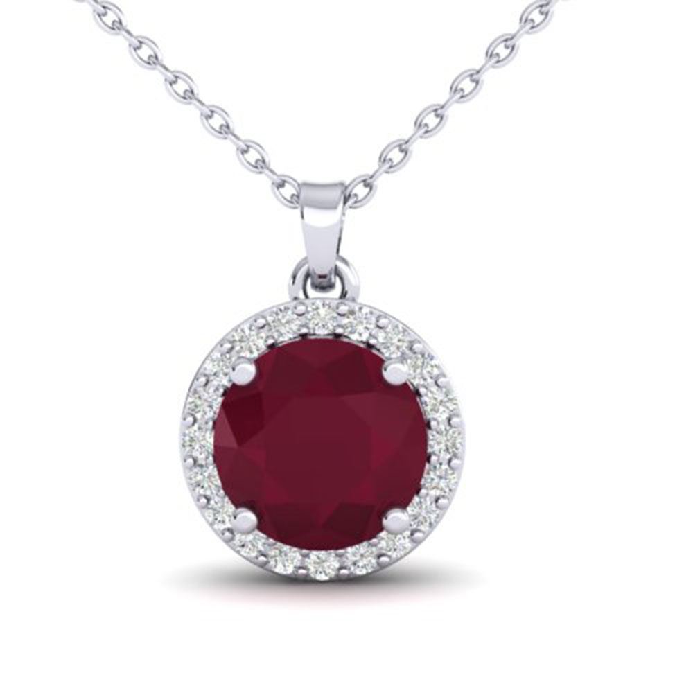 REF-34X4A - SKU: 21573 ---- 2 ctw Ruby & Halo VS/SI Diamond Micro Pave Necklace 18k White Gold