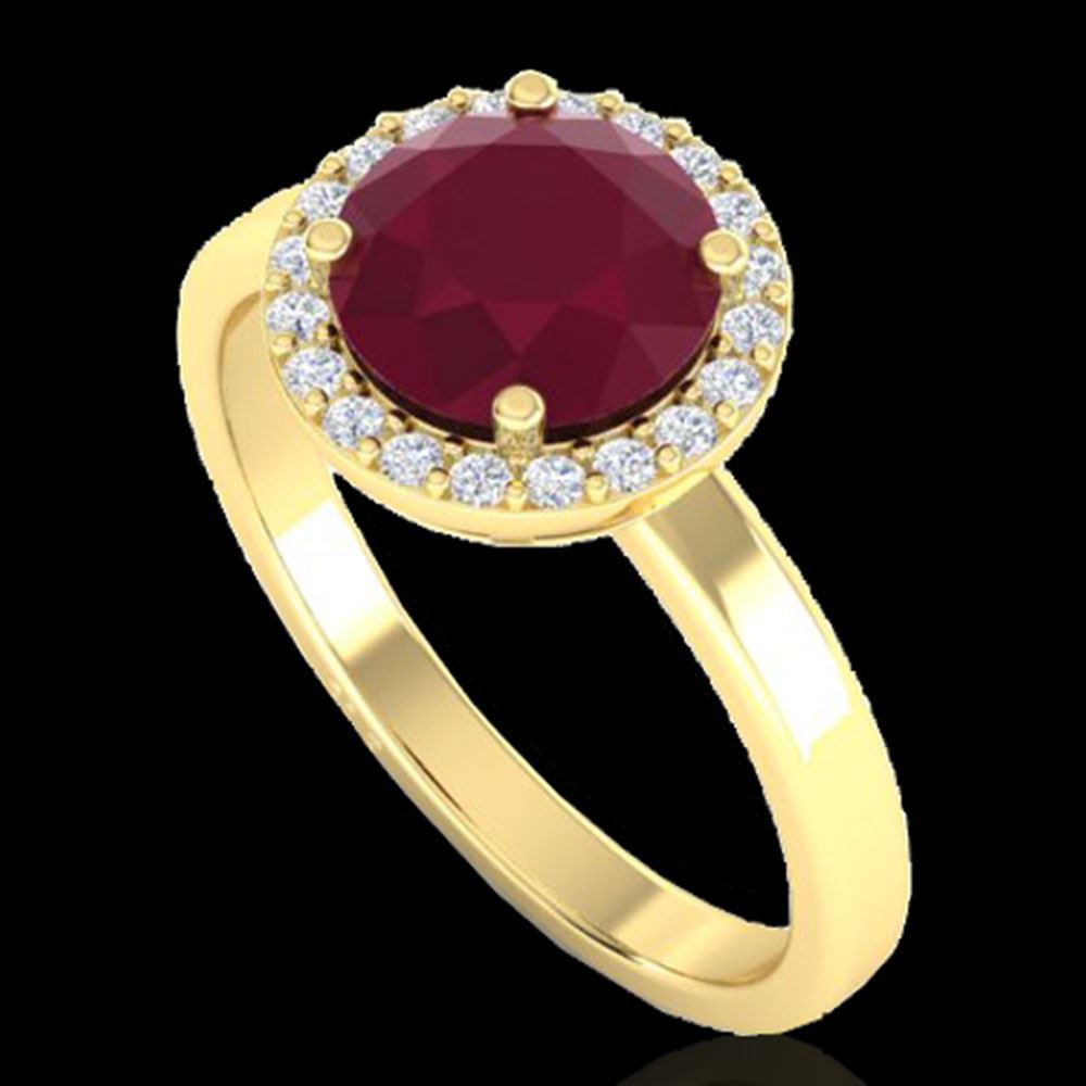 REF-45X3A - SKU: 21642 ---- 2 ctw Ruby & Halo VS/SI Diamond Micro Pave Ring 18k Yellow Gold