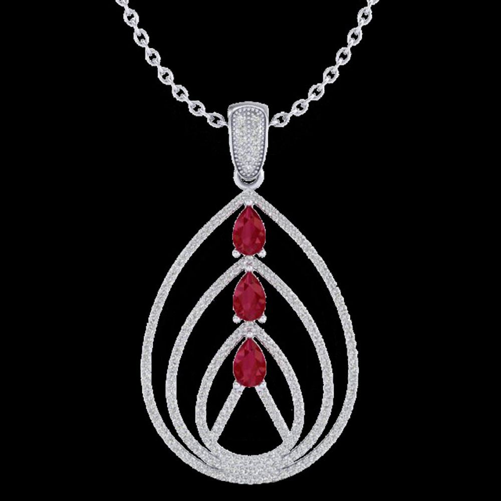 SKU: 22469 ---- 2 ctw Ruby & Micro Pave VS/SI Diamond Designer Necklace 18k White Gold