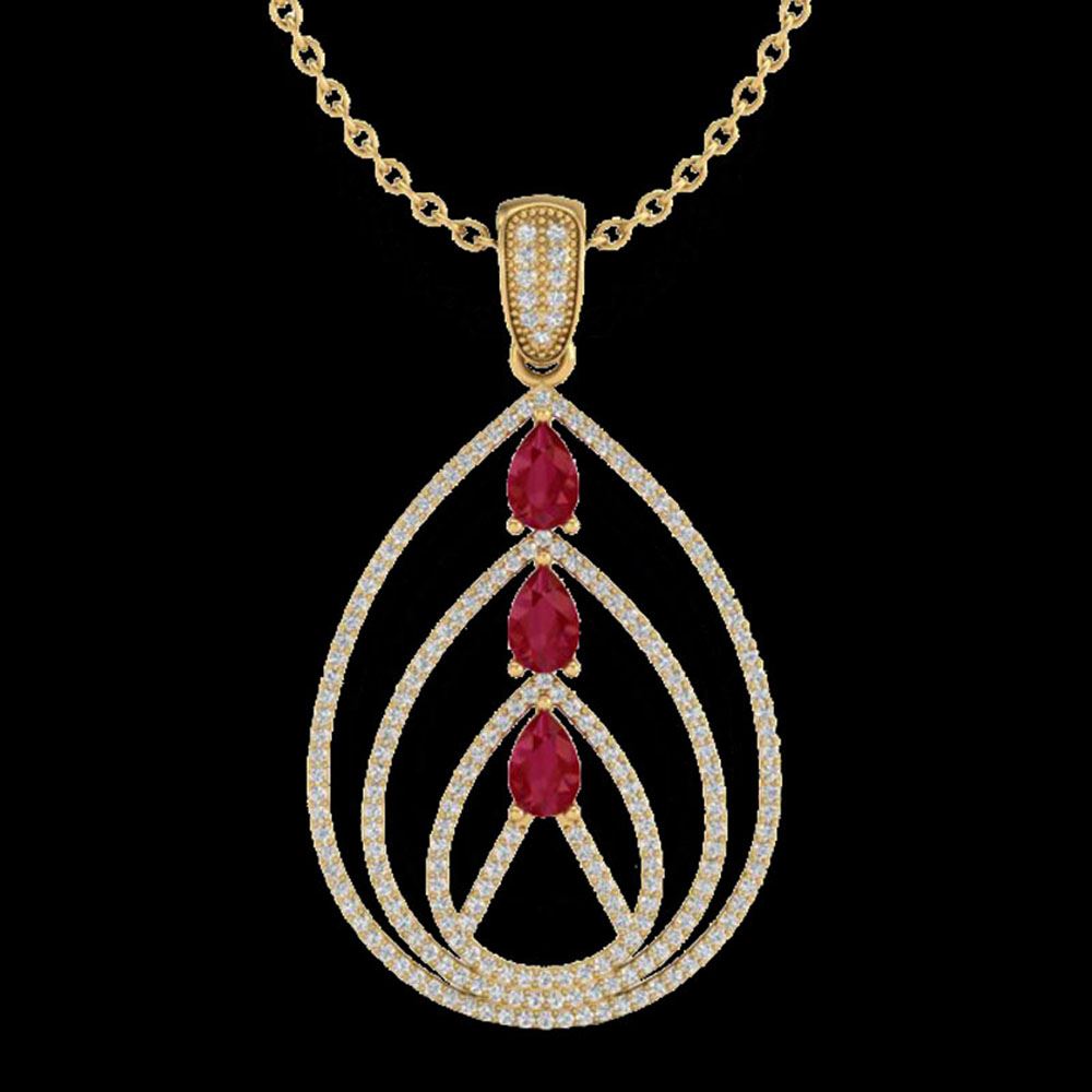 REF-163F6M - SKU: 22470 ---- 2 ctw Ruby & Micro Pave VS/SI Diamond Designer Necklace 18k Yellow Gold