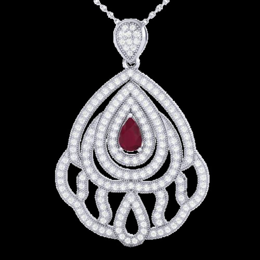 REF-180A2N - SKU: 21269 ---- 2 ctw Ruby & Micro Pave VS/SI Diamond Necklace 18k White Gold