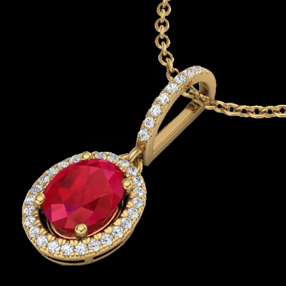 REF-55H2R - SKU: 20668 ---- 2 ctw Ruby & Micro Pave VS/SI Diamond Necklace Halo 18k Yellow Gold