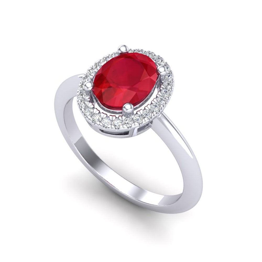 REF-40F9M - SKU: 21018 ---- 2 ctw Ruby & Micro Pave VS/SI Diamond Ring Halo 18k White Gold