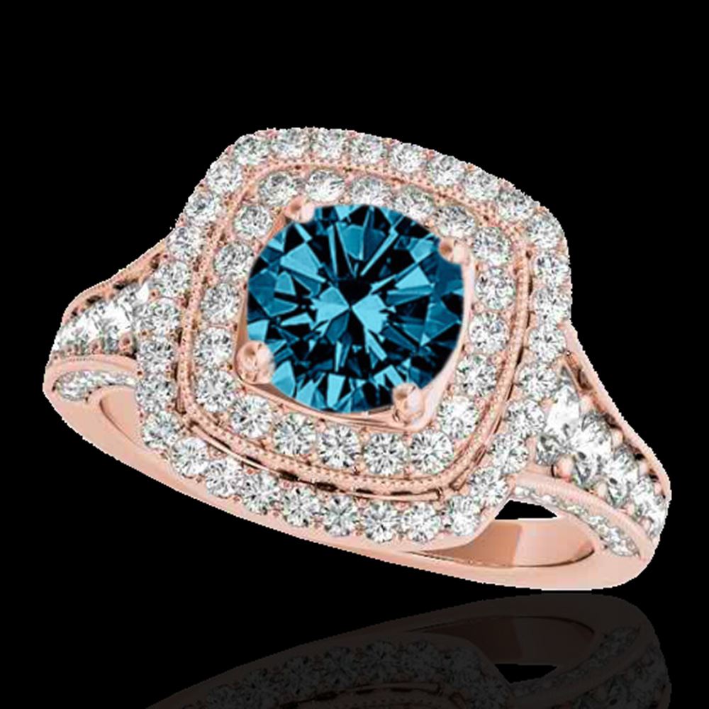 REF-170Y5X - SKU: 33658 ---- 2 ctw SI Certified Blue Diamond Solitaire Halo Ring 10k Rose Gold