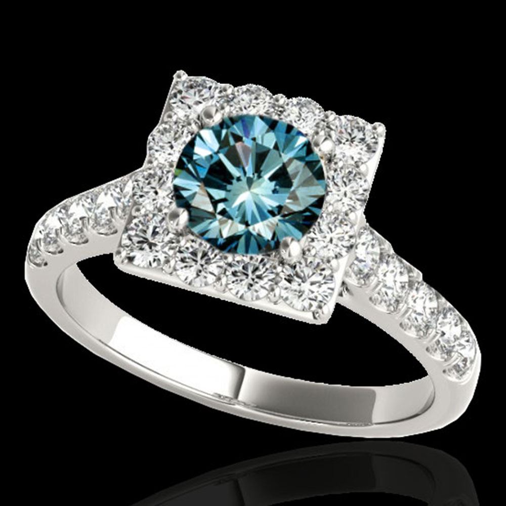 REF-158H2R - SKU: 34137 ---- 2 ctw SI Certified Blue Diamond Solitaire Halo Ring 10k White Gold