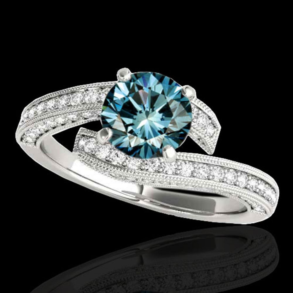 REF-170A5N - SKU: 35135 ---- 2 ctw SI Certified Fancy Blue Diamond Bypass Solitaire Ring 10k White Gold