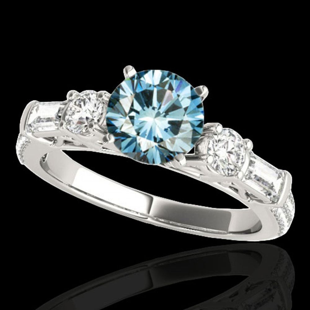 REF-166H4R - SKU: 35476 ---- 2 ctw SI Certified Fancy Blue Diamond Pave Solitaire Ring 10k White Gold