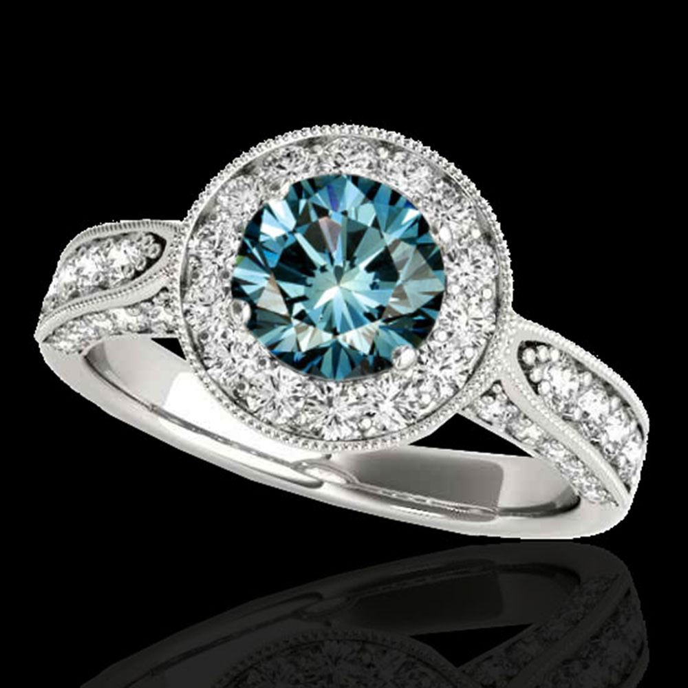 REF-156K8Y - SKU: 34500 ---- 2 ctw SI Certified Fancy Blue Diamond Solitaire Halo Ring 10k White Gold