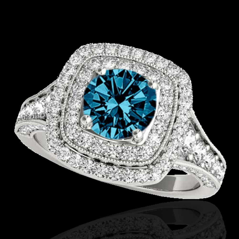 REF-170H5R - SKU: 33657 ---- 2 ctw SI Certified Fancy Blue Diamond Solitaire Halo Ring 10k White Gold
