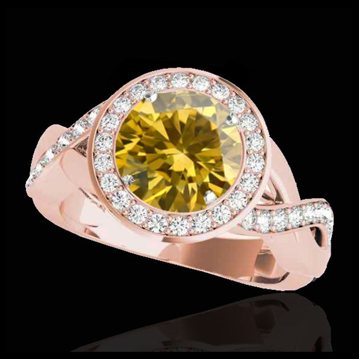 2 ctw SI/I Fancy Intense Yellow Diamond Halo Ring 10K Rose Gold