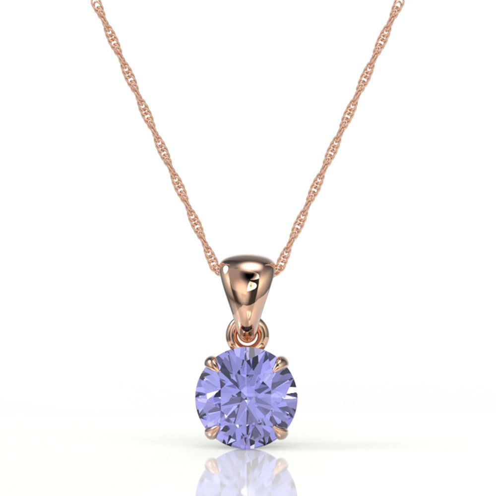 REF-32A8N - SKU: 22042 ---- 2 ctw Tanzanite Designer Solitaire Necklace 14k Rose Gold