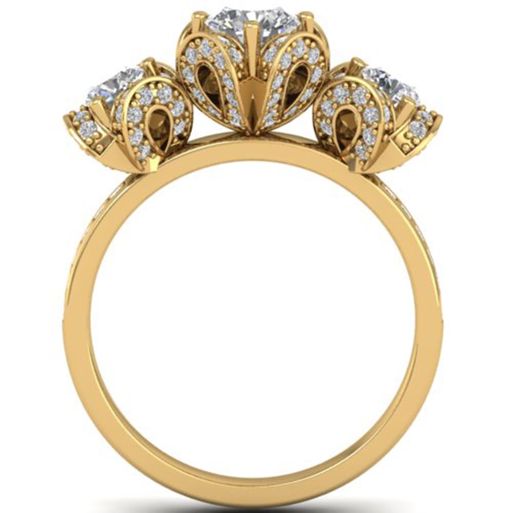 REF-200K5Y - SKU: 30284 ---- 2 ctw VS/SI Diamond Art Deco 3 Stone Ring 14k Yellow Gold