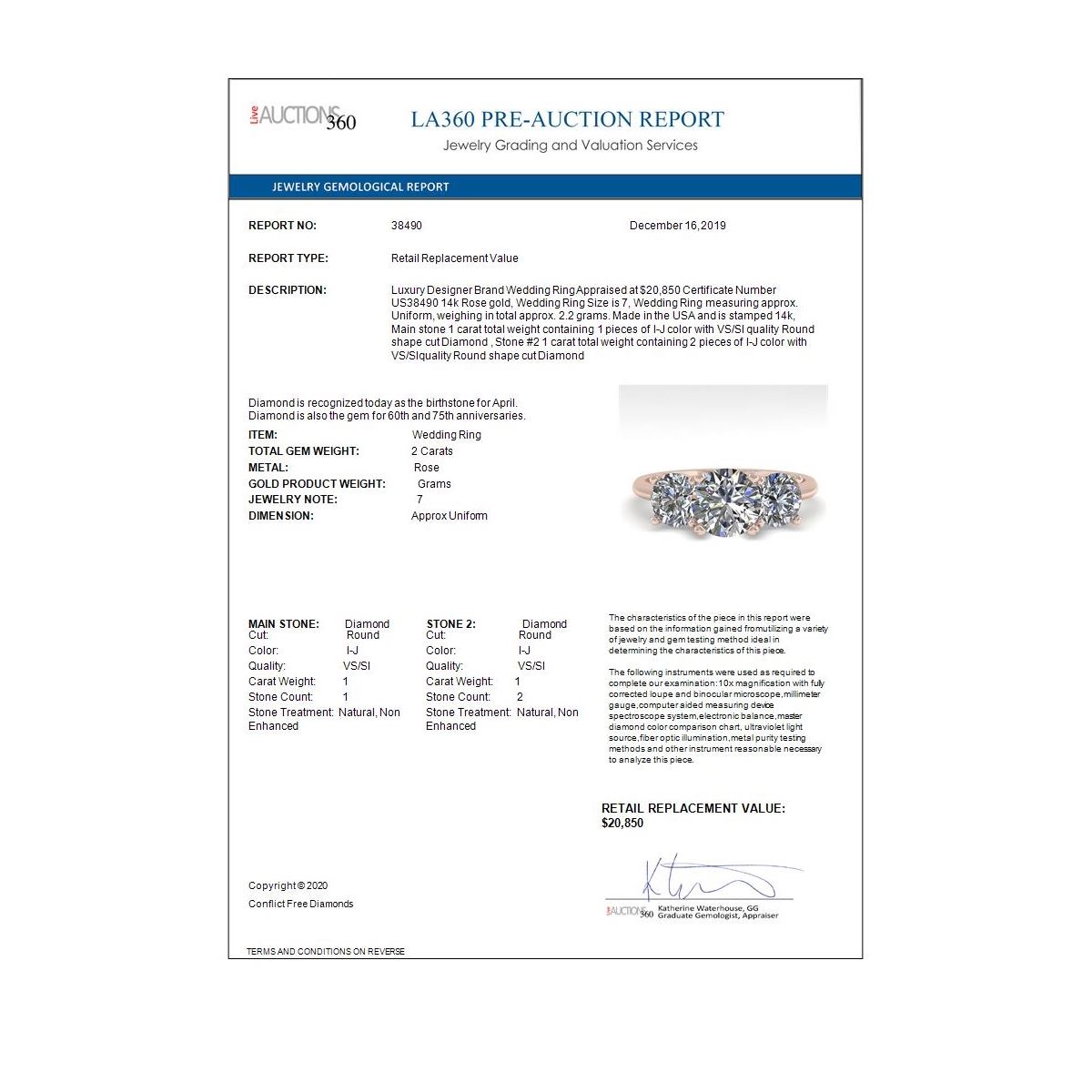REF-390H8R - SKU: 38490 ---- 2 ctw VS/SI Diamond Past Present Future Designer Ring 14k Rose Gold