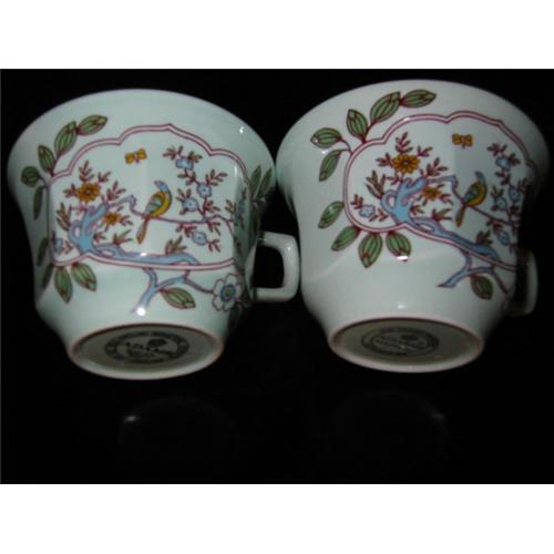 two gorgious cups. collectible and decorative. exceptional color light blue /green with beautiful flowers and bird on a branch with blue and maroon colors. designed around the cup inside. excellent condition. vintage absolutely. the base reads: image of crown top ADAMS Member of the Wedgewood Group and around (on the circle) Real English Ironstone Micratex Est 1657 England. normal wear and tear. something to think about.