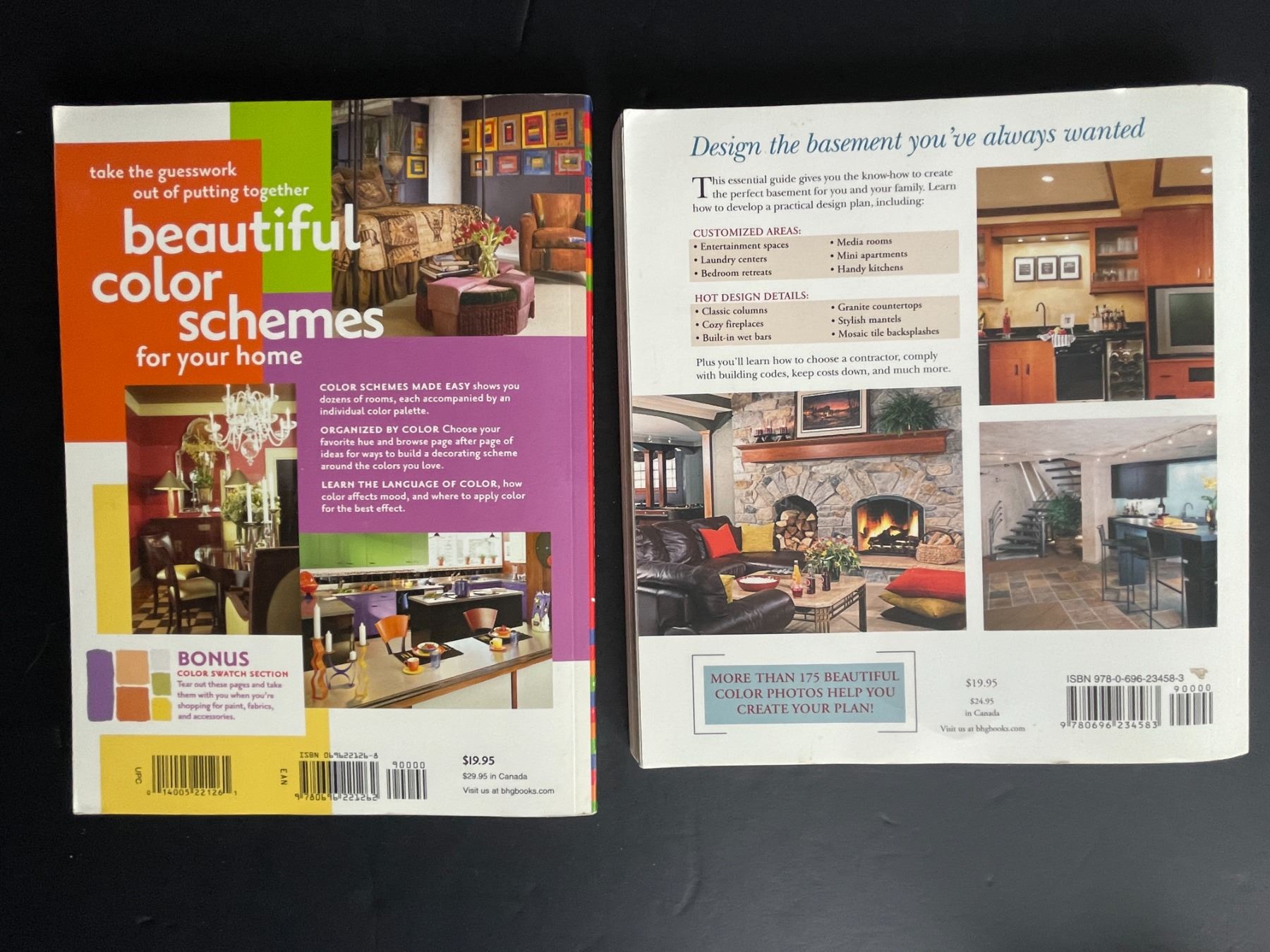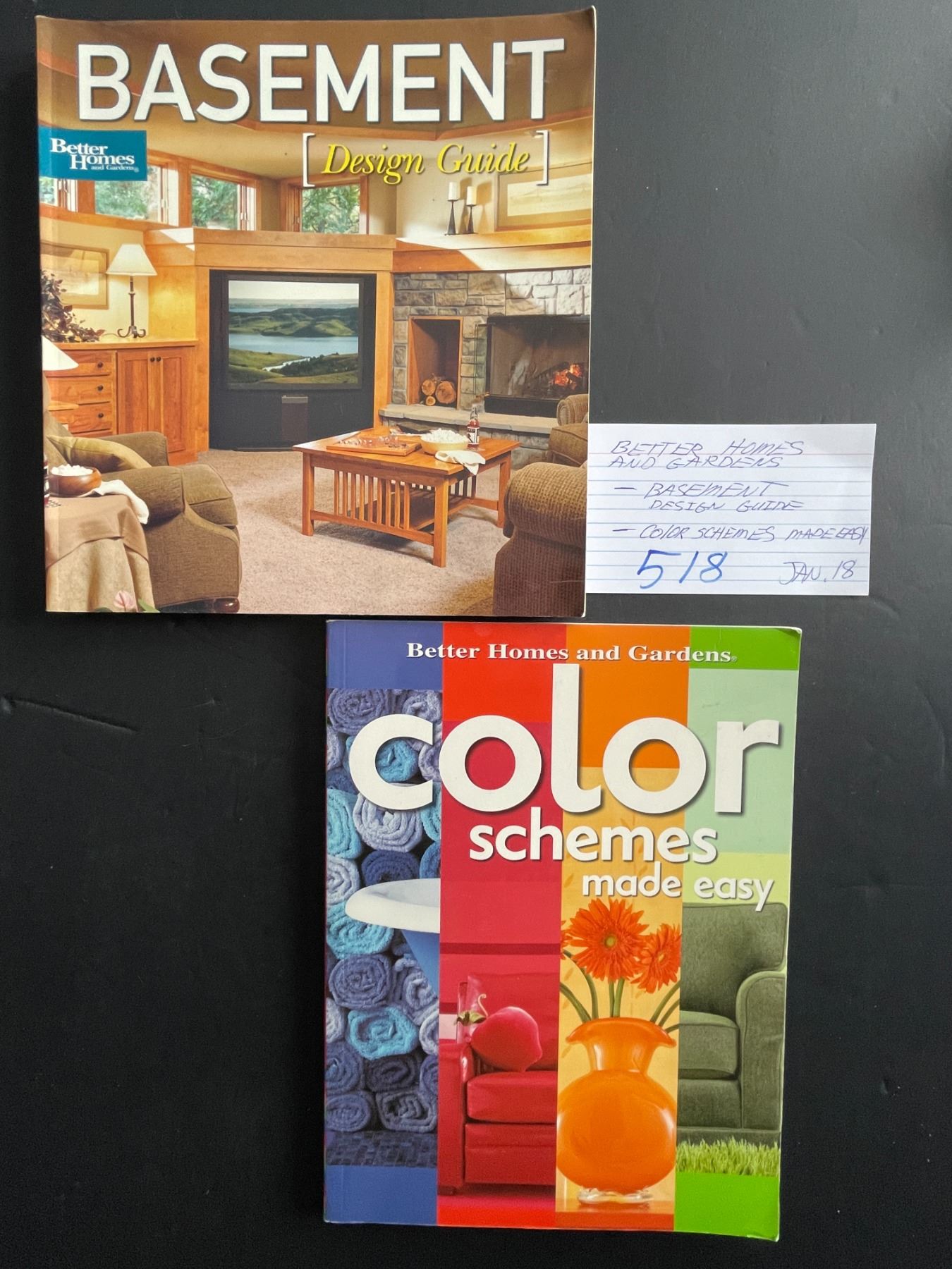 2 décor books -better homes and gardens, basement design guide, colour schemes made easy