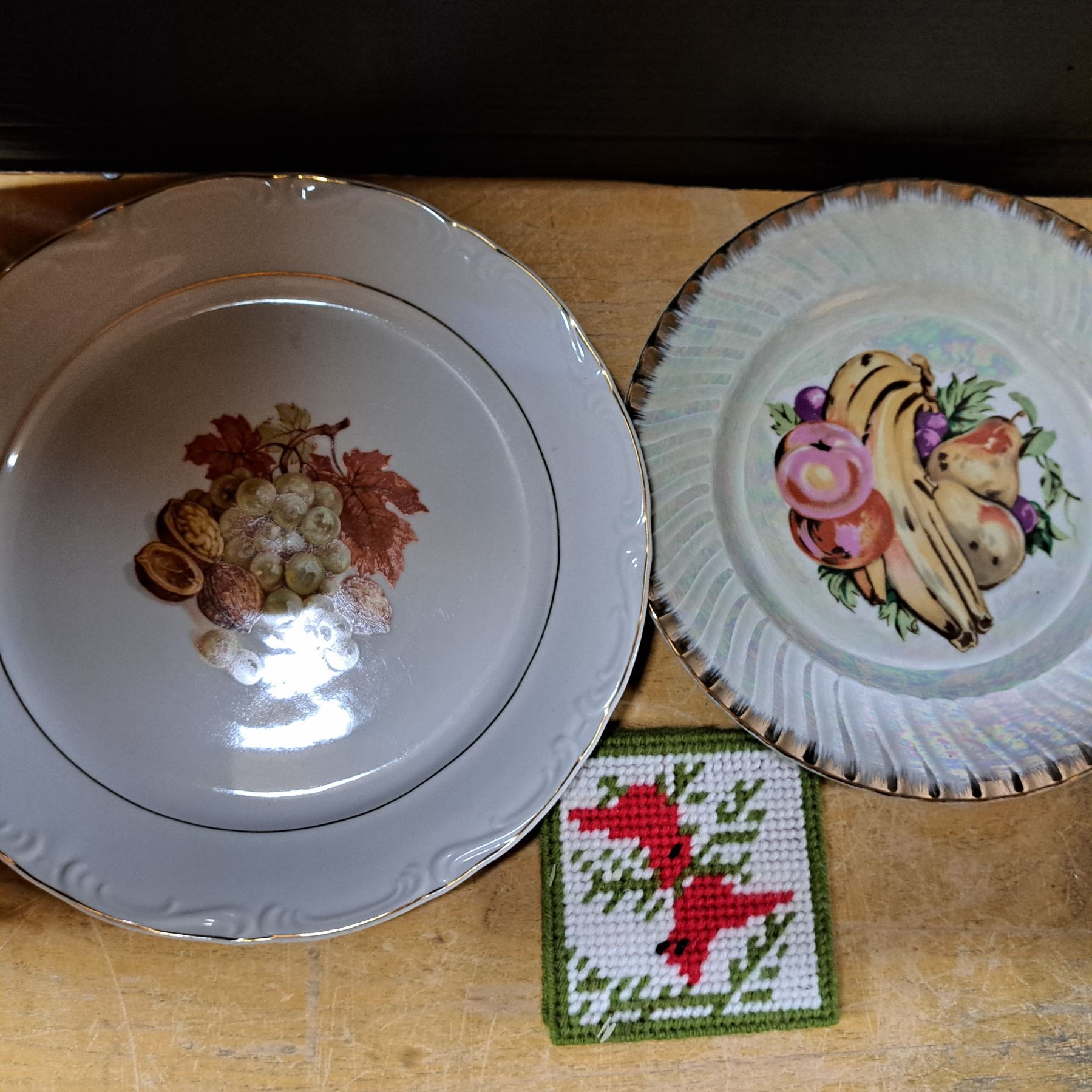 2 decorative plates and coasters