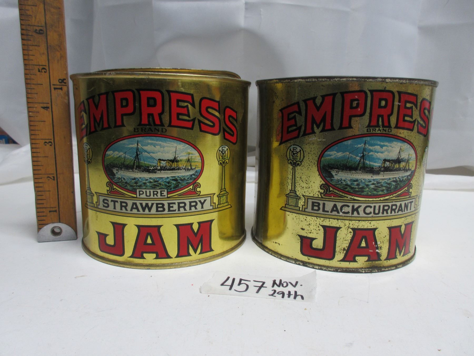 2 different Empress (ship) jam tins