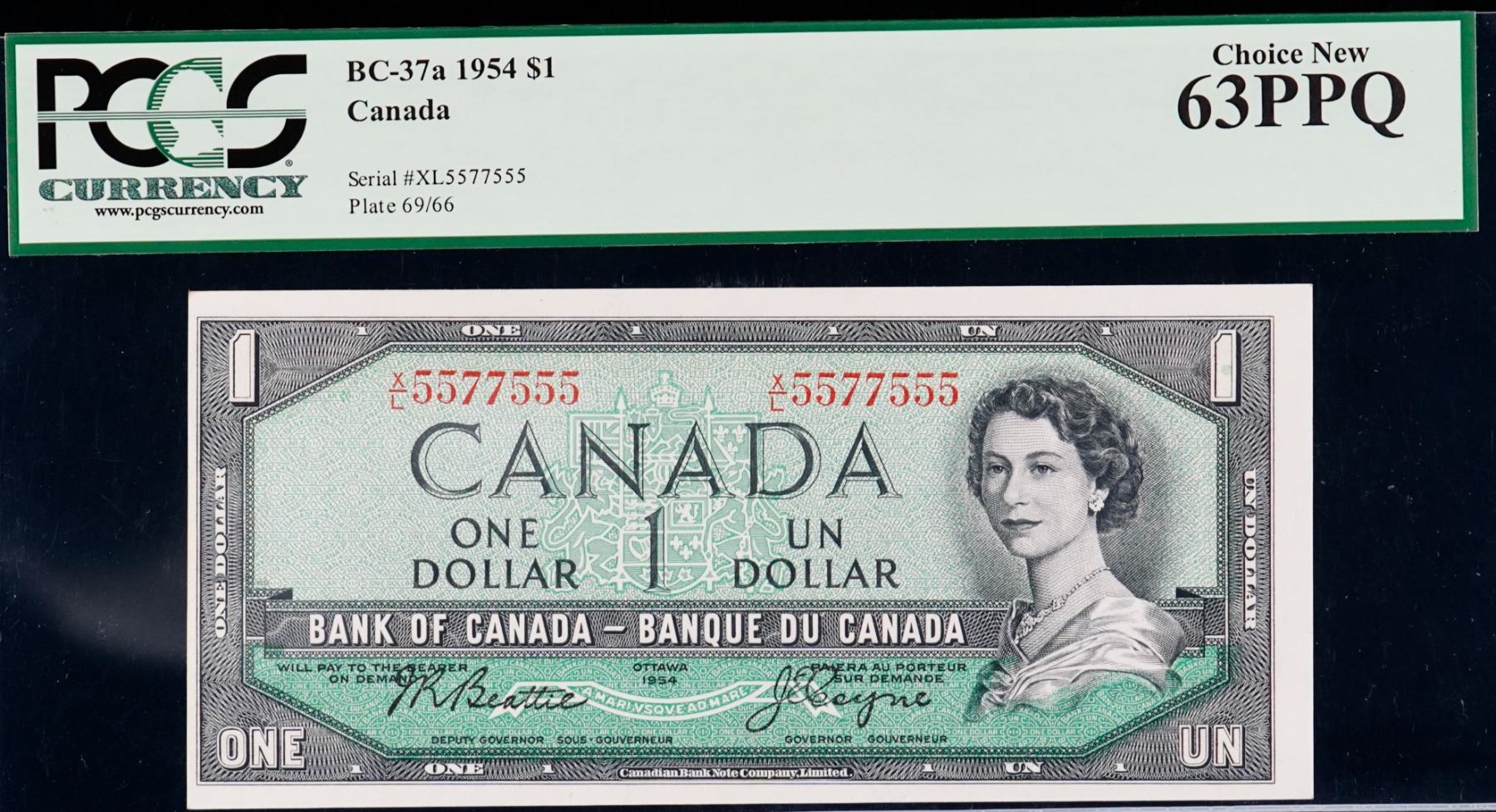 2-digit; 1954 $1 BC-37a #X/L 5577555 PCGS 63 PPQ