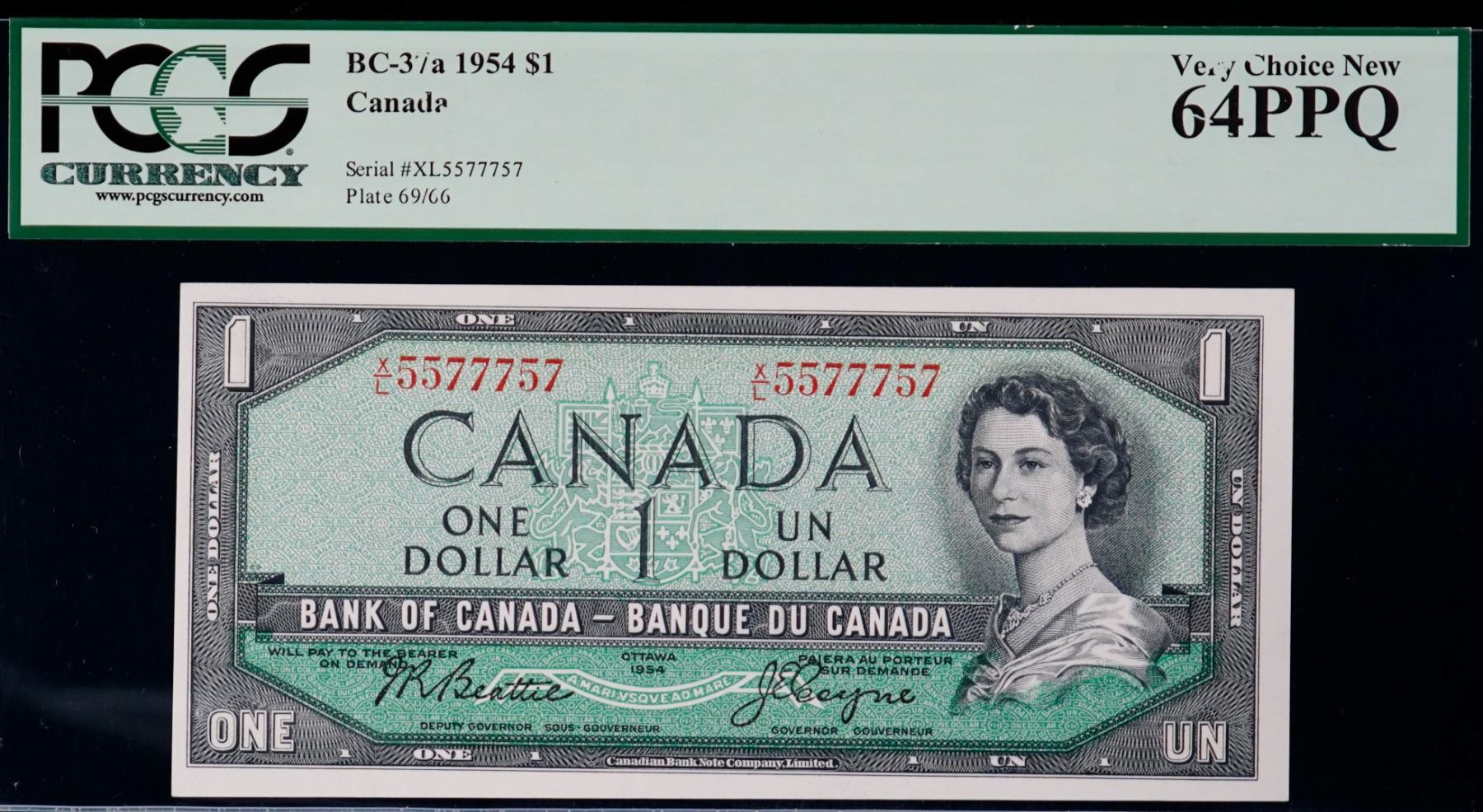 2-digit; 1954 $1 BC-37a #X/L 5577757 PCGS 64 PPQ