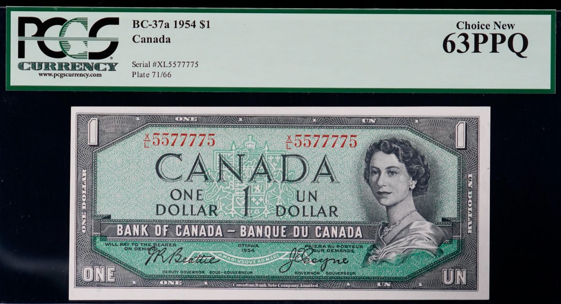 2-digit; 1954 $1 BC-37a #X/L 5577775 PCGS 63 PPQ