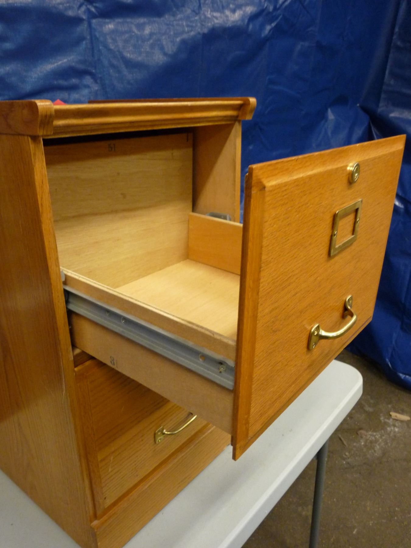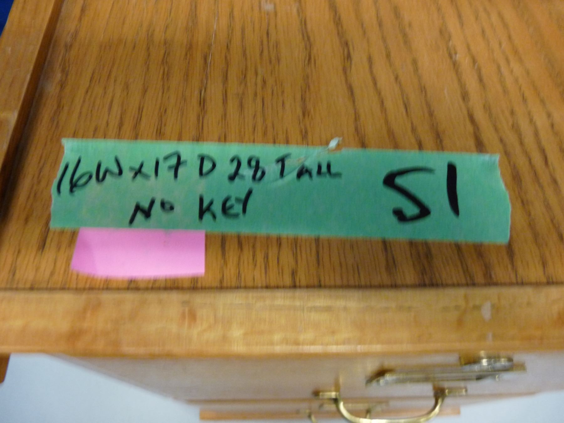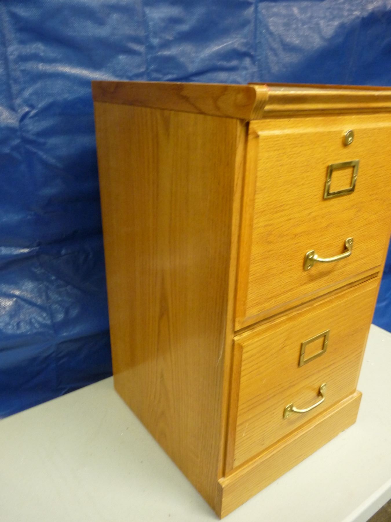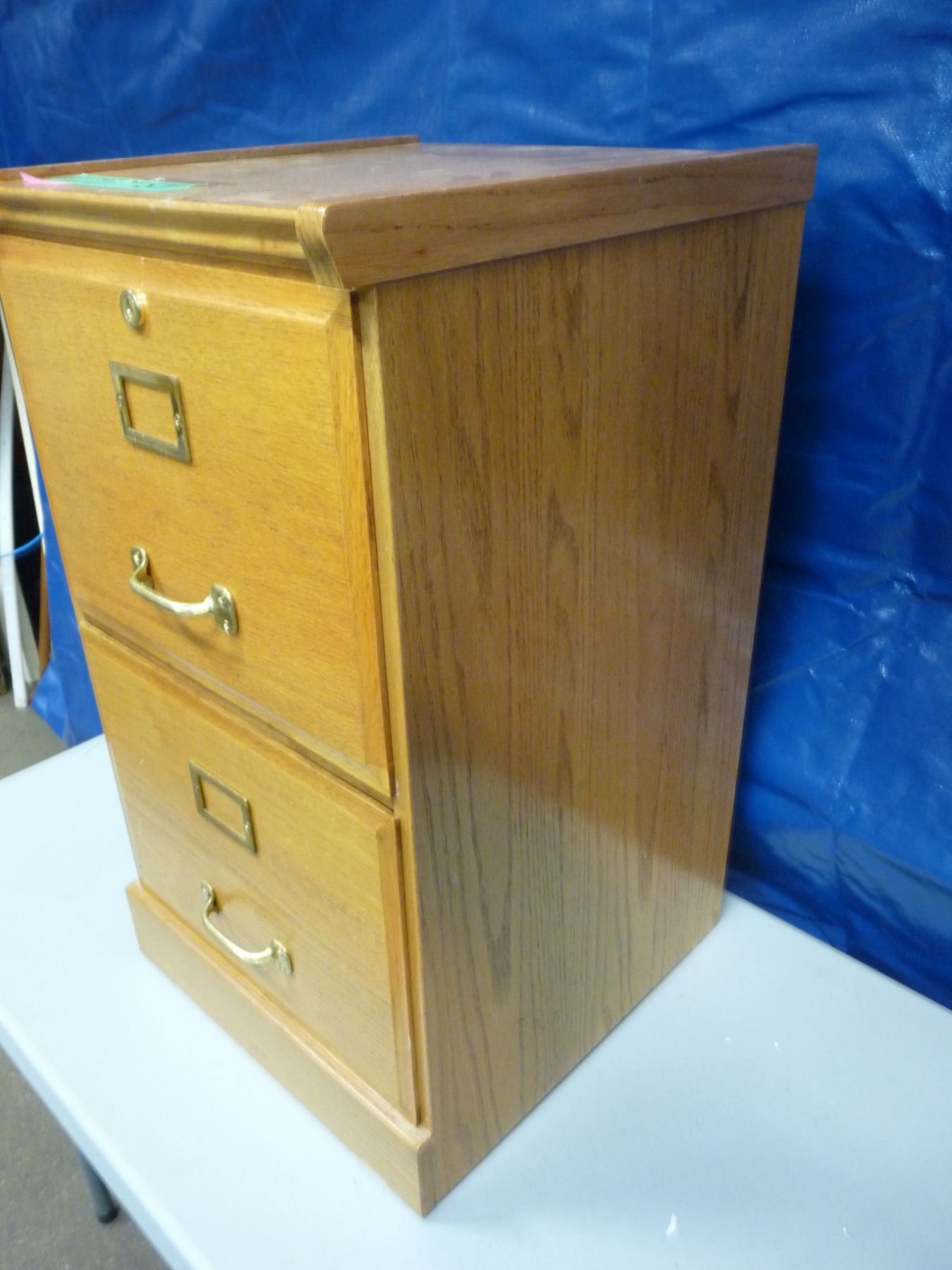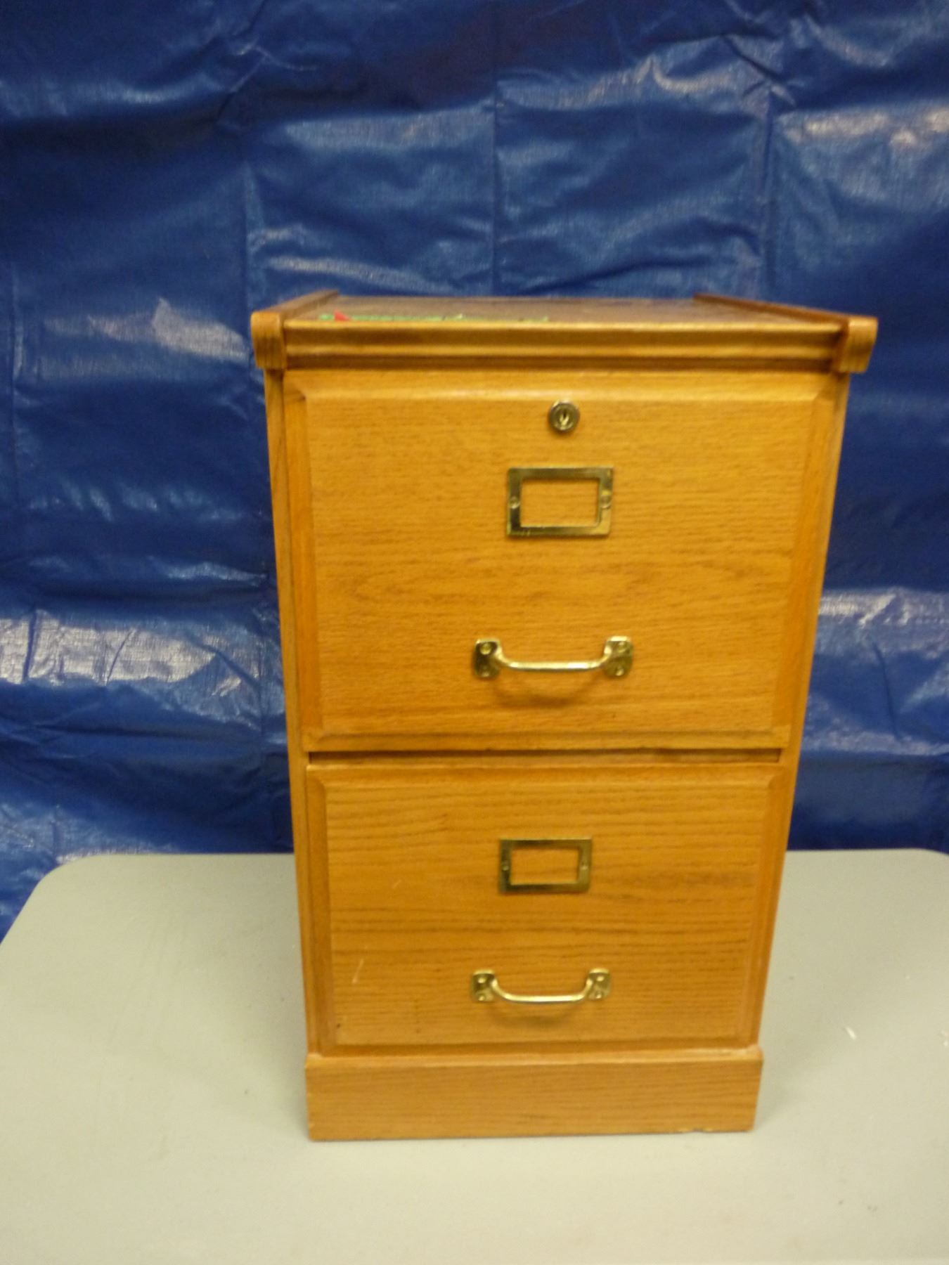 2 drawer wood filing cabinet 16 x 17 x 28. No keys