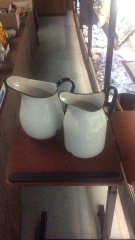 2 enamel water pitchers