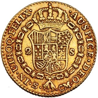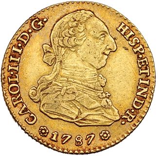 2 escudos. 1787. Sevilla. CM. VI-1423. Hojita y punzón. MBC.