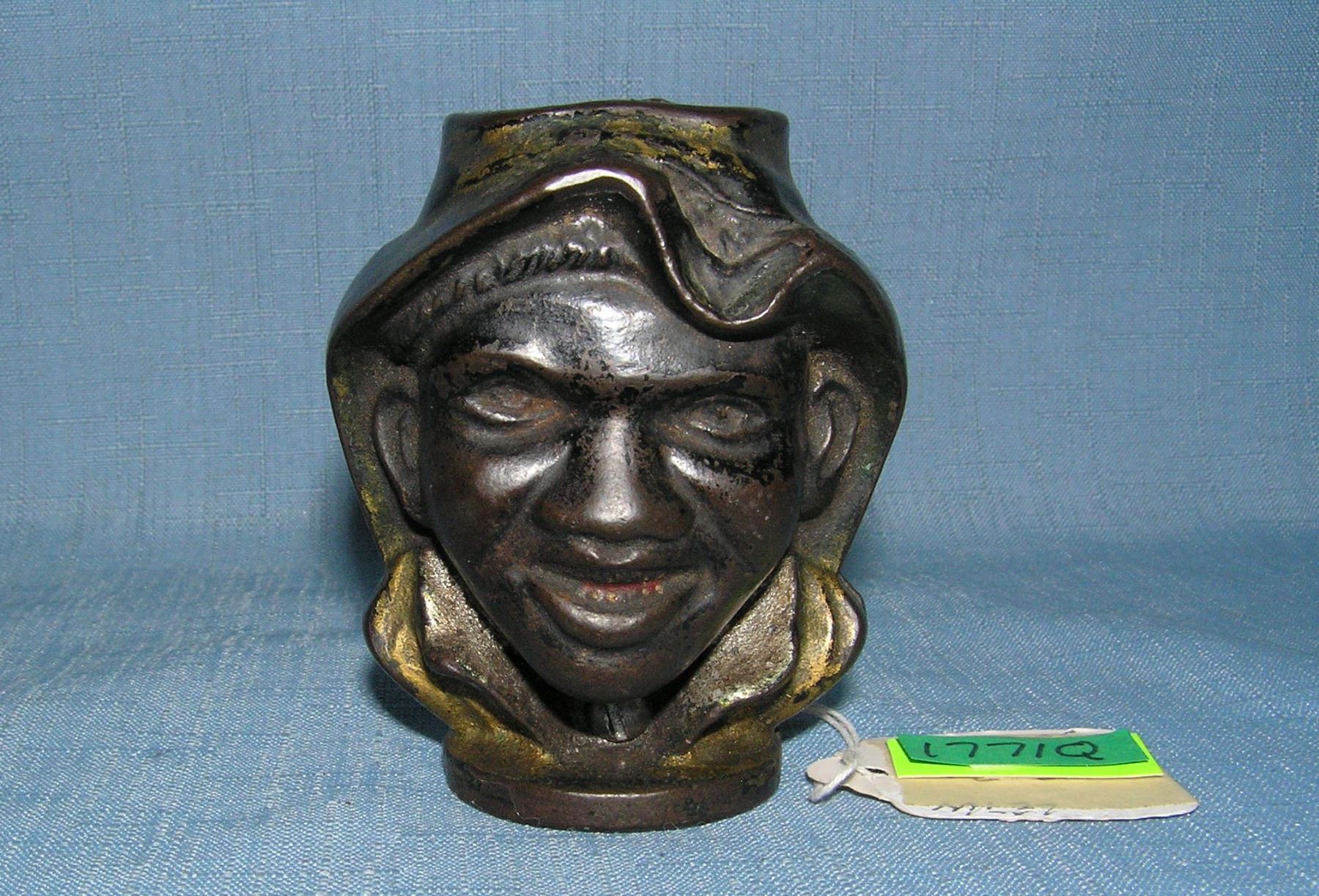 2 face double sided slave boy bank all cast iron with gold trim circa early 1900s by AC Williams Company est. value $600.00-$700.00