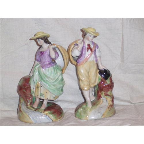 2 porcelain figurines of a boy and a girl.
